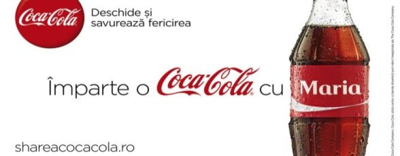 Pentru prima oară în istoria brandului, Coca-Cola le oferă logo-ul consumatorilor săi şi îi îndeamnă să îi suprindă pe cei dragi oferindu-le o sticlă de Coca-Cola cu numele lor. Andrei, Ana sau Maria au acum propriile sticle de Coca-Cola, ce le poartă numele.