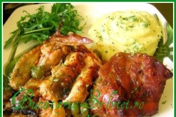 Pastrav la gratar cu écrase de cartofi si mazare si sos picant de rosii, pin si telina