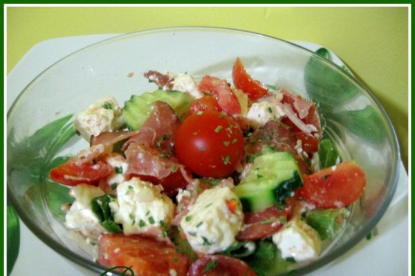 Salata cu feta si jambon crud afumat